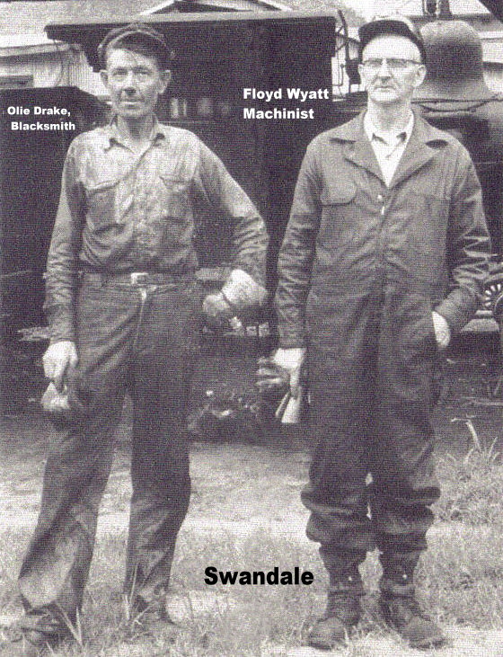 "'Captain' John Swan, born in 1845 spent his early life in North Carolina where he learned the logging business and built several mills. He came to Clay County, WV in 1899 where he continued the study of growing forests and up-to-date logging practices. From the beginning, he appreciated the value of the oaks and poplars which grew in the eastern section of the county. He planned to convert them into a source of pertpetual wealth by wise cutting of the matured trees. He put an experimental operation at the mouth of Turkey Run on the south side of the Elk RIver six miles north of Dundon. He eventually built the mill on the Buffalo Creek where the Barren She comes in from the south. Captain Swan was the ERC&L Superintendent of Lumber and Timber Operations from 1903 through 1915/1916 and it was for him that Swandale got its name. Swan may have been one of the original nine shareholders of the ERC&L Co."