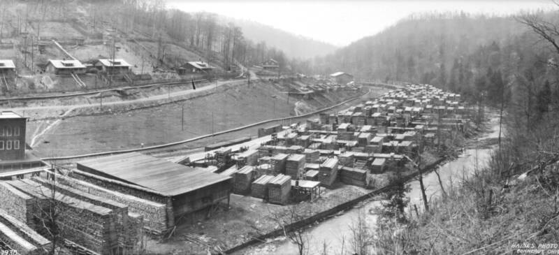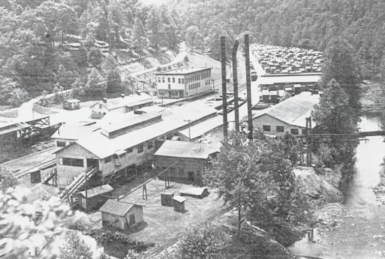 This overview of Swandale was taken in the mid-1950s according to Cody Burdette. His rationale is that in that time frame a major effort was undertaken to generally clean up the area around the sawmill. Notice how clean the ground around the mill is in the photo.