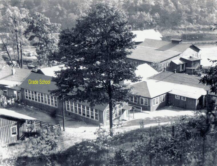 The community gym is the large light-colored structure in the background in the photo above. According to Theodore Griffith it was constructed in 1956 or 1957 and was built on the foundation of the original three-story company store. The original plans called for refurishing the basement to serve as team locker rooms and coaches offices but work was halted when Pittston took over in 1959.