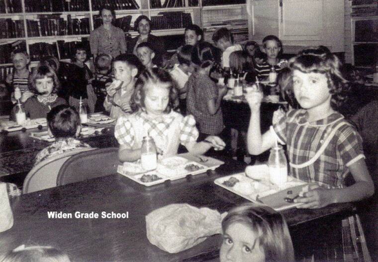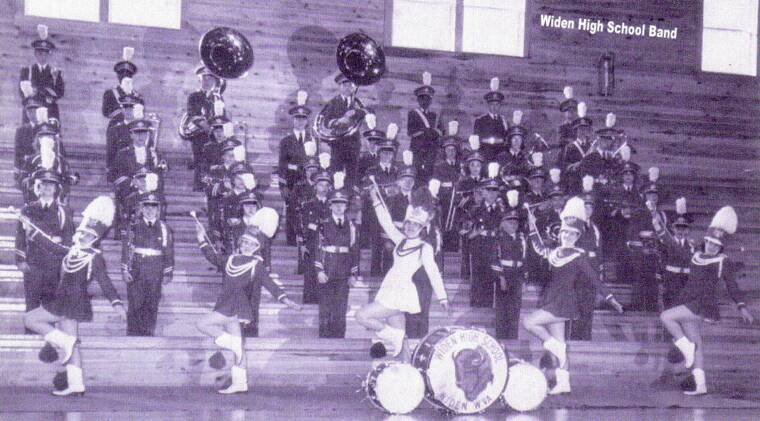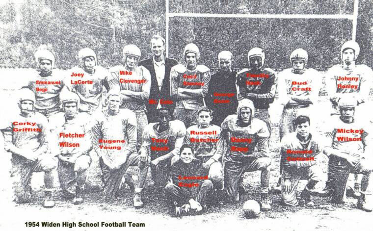 Mr. J.G. Bradley is remembered as being very concerned about the well-being of the youth of the families of the ERC&L Company. It is reported that he paid a premium to get the best teachers he could get. These four images, provided by Loretta Samples from her collection show the Widen grade school, students enjoying lunch, apparently in that building, and a teacher at the front of her class. Not to be outdone by their peers in larger towns, Widen High School had a football team and marching band.