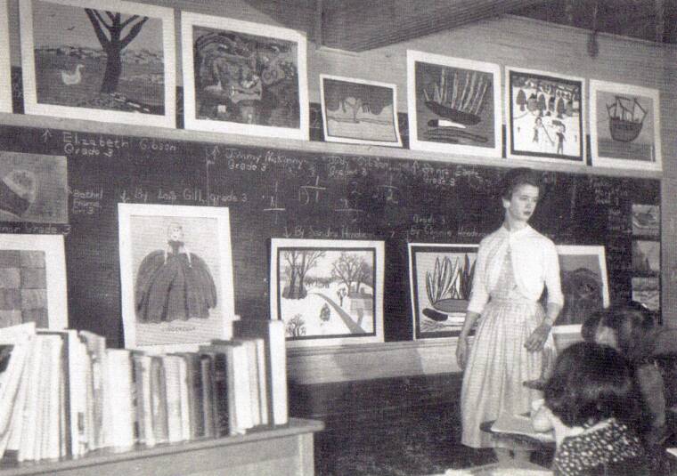 According to Lois Kincaid, the photo above shows Mrs. Ashley's 3rd Grade class. The picture of the girl in the large dress was drawn by Lois. This photo appeared in the Clay County Free Press in 1957-58.