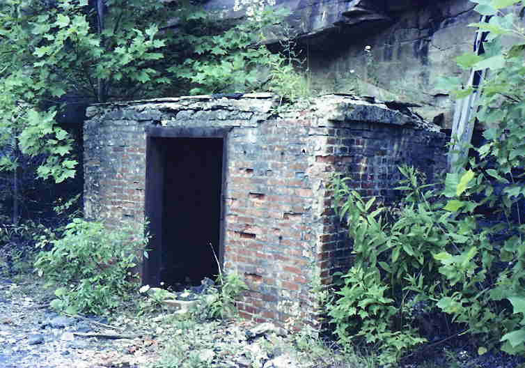 Very few brick structures of any kind appear in photographs of the ERC&L property. This small brick shed stood in Widen. I assume that it was an explosives storage shed, although I cannot be sure.