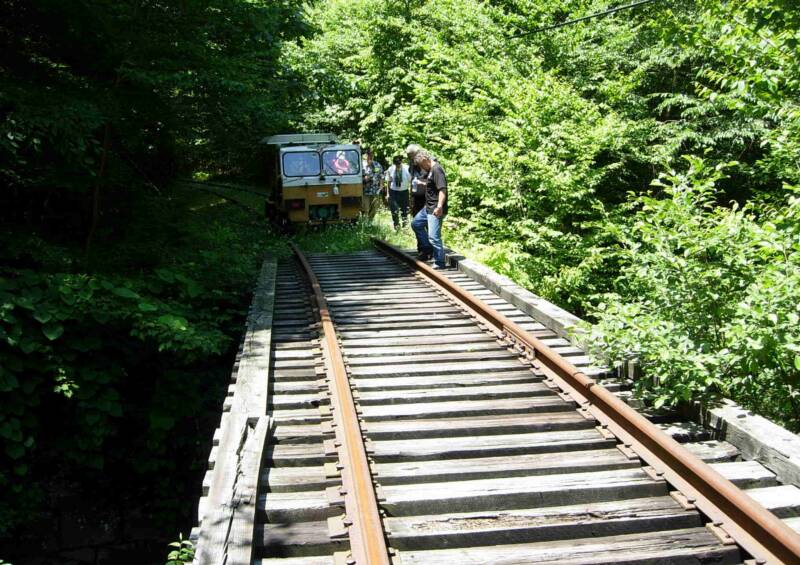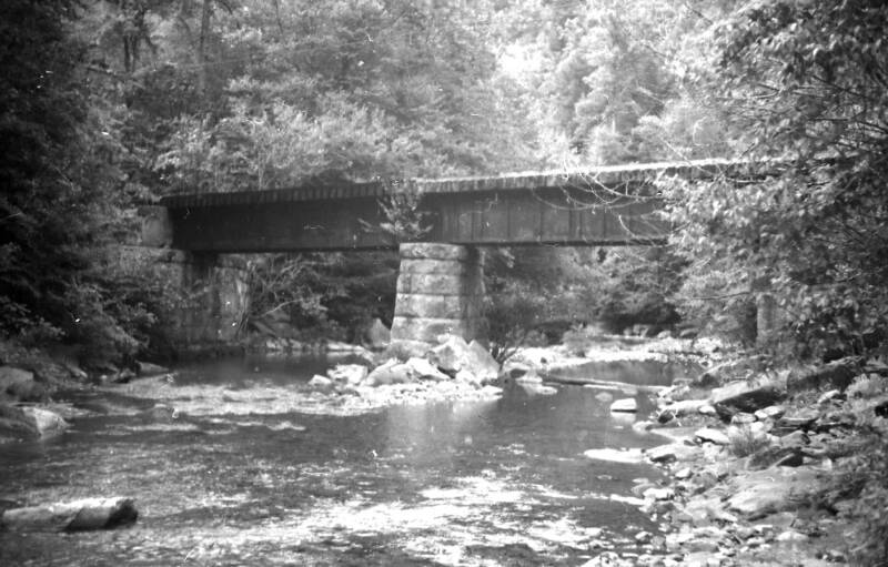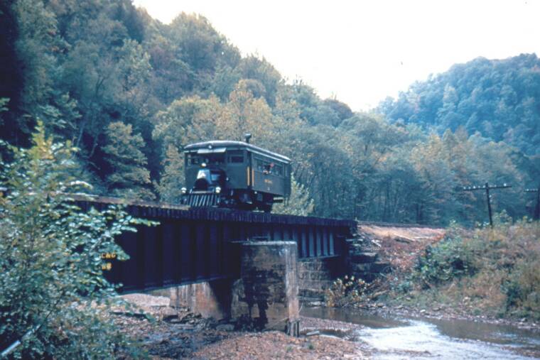 The Sand Fork plate girder bridge is an oft-photographed site on the BC&G. This was one of the two bridges dynamited in 1952 during the labor unrest. .