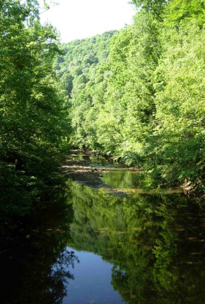 This is a view of the Buffalo Creek from the Sand Fork bridge. When the mine was in operation, the creek was black in color due to coal waste in the water.