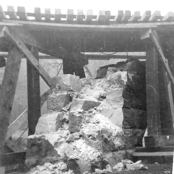 The center pillar was destroyed and replaced with a not-so-handsome concrete affair which clearly was not going to be taken out with another small dynamite charge!